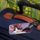 Esta etiqueta de bagagem tem um gatinho artístico.