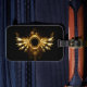 Asas mecânicas brilhantes, com engrenagens e faixa redonda de latão. Steampunk