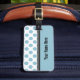 Etiqueta de bagagem de bolinhas branca e azul-aquamarina personalizada. Personalize com seu próprio texto.