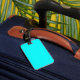 Etiqueta de bagagem com nome e endereço numa cor azul aqua sólida. Personalize com seu nome e endereço usando os modelos fáceis. A cor da fonte, o estilo da fonte e o tamanho da fonte são personalizáveis.