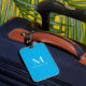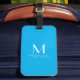 Etiqueta de bagagem com fundo de cor sólida azul-céu e fontes brancas .design simples e flexível por Alma Wad .Personalize-a com seu nome e monograma agora ..