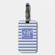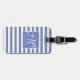 Etiqueta De Bagagem Azul Clássico e Branco - Monograma de Script