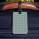 Esta etiqueta de bagagem apresenta um padrão de cor azul e dourado, em branco, pelo artista Jayne Wilson.