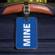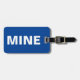 Esta engraçada etiqueta azul de bagagem diz tudo! Diz "meu" na frente alto e claro em branco contra o fundo azul. Você pode personalizar facilmente a parte de trás desta mala engraçada com seus detalhes necessários.