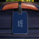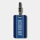 Etiqueta de mala azul-viagem do marinho personalizada | estilo elegante. Design de listra branca e azul clássico com letras iniciais de nome monograma branco. Ideia de presente de monograma elegante para homens e mulheres. Azul escuro.