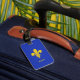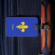 Uma Etiqueta Real Azul de Bagagem com uma Fleur de Lis Dourada: um delicioso e real acessório para sua bagagem!
