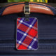 Etiqueta de bagagem azul-tartan, vermelha e branca