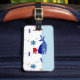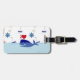 Baleia bonito com bico do coração. Fundo náutico que caracteriza faróis, âncoras, veleiros, gaivotas e rodas do navio. Personalize com texto para personalizar.