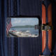 Etiqueta De Bagagem Bandeira Americana em Marina no lago Arrohouad