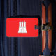 Bagagem com pavilhão de Hamburgo, bandeira vermelha com ilustração de um castelo branco com três torres