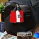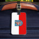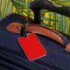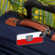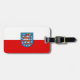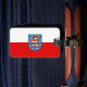 Etiqueta de bagagens com bandeira variante da Turíngia; design com duas bandas horizontais de vermelho e branco e emblema com leão no centro