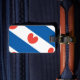 Bandeira de Friesland, uma província nos Países Baixos. Consistem em listras diagonais azuis e brancas; nas listras do branco são vermelhas pompeblêden, as folhas do água-lírio amarelo, que pode lembrar um dos corações, mas de acordo com as instruções oficiais "não deve coração-ser dado forma".