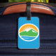 Etiqueta de bagagem com um design com a bandeira de Provo, Utah. Uma bandeira azul com o logotipo da Cidade do Provo no centro. O logótipo representa o lago de Utah e os picos de montanha próximos com o sol ascensão ao fundo