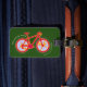 Um elemento verde com uma imagem vermelha de bicicleta e as palavras "mountain bike" e "life on duas rodas"