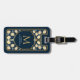 Separe a sua bagagem com esta etiqueta de viagem personalizada! Apresentando uma espada real e um escudo design de monograma de fantasia medieval com flores de creme e folhas azuis contra um fundo azul escuro. Personalize o texto, a fonte e as cores para se adequarem às suas preferências de design. Perfeito para qualquer aventura! NOTA: O ouro apresentado nesta rubrica NÃO é FOLHA REAL e é impresso em cores planas.