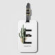 Etiqueta de bagagem de E monograma, moderna e inspirada em boho. Apresenta ilustrações de aquarela de cacto tropical com acentos de folha de ouro falsos e pincel preto perfurado. Personalize adicionando um nome. Esta elegante etiqueta de bagagem floral será perfeita como presente de damas de honra, presente de aniversário e presente de formatura.