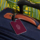 Este design de etiqueta de bagagem moderna apresenta um fundo Borgonha, com suas iniciais em negrito texto branco para um olhar simples e na moda, mas profissional.