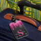Etiqueta De Bagagem Brilho Rosa Quente no Monograma Preto