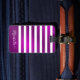 Crie uma etiqueta de bagagem personalizada única com um design roxo e branco de fúcsia. O texto do modelo facilita a digitação de seu nome, endereço, telefone e outras informações de contato. A parte de trás está em roxo com texto branco.