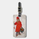 A filha de Carl Larsson segurando velas e maçãs. Brita está vestindo um vestido vermelho de Natal e um chapéu