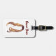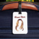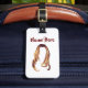 Arte loira e castanha, cor de fundo personalizada e etiqueta de bagagem de texto personalizada.