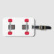 Rodas vermelhas e caminhões fazem esta etiqueta de bagagem parecer um skate, tipo.