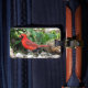 uma imagem de um lindo Cardeal na frente e um espaço para o seu nome, endereço e número de telefone no verso