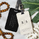 Viagem com sofisticação usando esta etiqueta personalizada de marfim e mala negra de casamento da Redwood & Vine Design Co. Projetada como um presente perfeito para recém-casados, esta etiqueta dupla apresenta uma fachada clássica de marfim personalizada com iniciais, nomes e data de casamento, e um dormente preto para informação de contato. Moderno, minimalista e prático, é um acessório elegante para cada jornada juntos.
