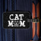 Texto de "Cat Mãe" com impressão de xadrez de búfalo preto e branco e cabelos brancos de gato a preto. A cor de fundo pode ser alterada.