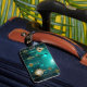 Etiqueta De Bagagem Chaves de Esqueleto Anticas em Fundo Verde