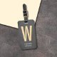 design de etiqueta de mala totalmente personalizável legal com fundo de cinza de textura e monograma amarelo pastel em negrito. Design moderno elegante.