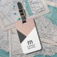 Design de etiqueta de bagagem personalizável moderna com um monograma e fundo geométrico em negrito.