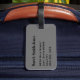 Etiqueta de bagagem com nome e endereço numa cor de fundo de uma cinza sólida (cinza). Personalize com seu nome e endereço usando os modelos fáceis. A cor da fonte, o estilo da fonte e o tamanho da fonte são personalizáveis.