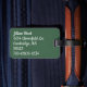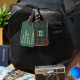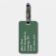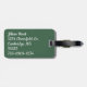 Etiqueta de mala de xadrez bonita feita no tradicional clã escocês bisset tartan padrão. Uma área de texto verde, na frente do meio, tem um monograma branco de letras solteiros e um nome preto pronto para personalizar. A parte traseira da etiqueta está verde estável com o texto de informações feito em branco.