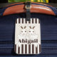 O design do produto apresenta gêmeos coelhos e fitas esbranquiçadas. Esta ilustração animal adorável com listras faz uma bela, clássica, moderna e única etiqueta de bagagem com texto personalizado para crianças