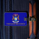 Etiqueta de bagagem com bandeira de Michigan, EUA