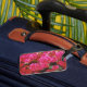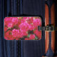 Esta etiqueta de bagagem com uma inserção de identidade é desenhada com flores de azálea cor-de-rosa.