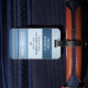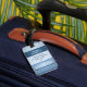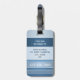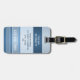 Etiqueta de bagagem com um elegante design de listragem azul de prata.