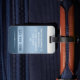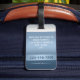 Etiqueta de bagagem com um elegante design de listragem azul de prata.