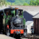 Um design fotográfico de um belamente restaurado trem verde a vapor.