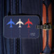 Planos azuis, brancos e vermelhos alinhados com rotas pontilhadas