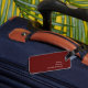 Abaixo de uma rua enchida com o mercado para na Bolonha, Italia, clientes escolhem através do produto coberto por guarda-chuvas coloridos para proteger-se da chuva. Este Tag da bagagem está inteiramente customizável e pronto para ser personalizado.