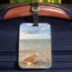 Etiqueta De Bagagem Conch Shell na areia na praia tropical