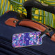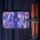 Camadas de confete redondo espalhado em roxo, turquesa, azul e rosa. Personalize com uma inicial.