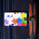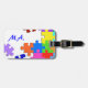 O quebra-cabeça colorido remenda na parte dianteira e na parte traseira. Suas iniciais na parte dianteira e sua outra informação na parte traseira.