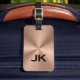 Elegant monogrammed copper brown metallic luggage tag with a stainless steel appearance. Customize with your information in black text. Please note, the material is not actual stainless steel but rather an image resembling steel.