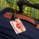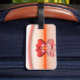 Etiqueta de bagagem com a minha trabalho de arte digital de dois corais flutuando na água sob um arco-íris. O texto personalizável diz "35 anos".