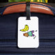 Viagem com personalidade usando estas etiquetas de bagagem mostrando uma criança animada segurando uma grande banana amarela. O design ousado e peculiar facilita a localização das suas bolsas ao mesmo tempo que adiciona um toque divertido e colorido. Durável e prático, essas etiquetas são perfeitas para crianças, famílias ou qualquer pessoa que ame acessórios únicos de viagem.