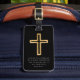 Tag Moderna de Bagagem Preta. Personalize-o no verso com seu nome e detalhes de contato. A Bíblia Verse Psalm na frente diz: "Psalm 91:11 "Porque ele irá comandar seus anjos em relação a você para te guarda de todas as maneiras dele."