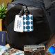 Etiqueta de bagagem de grande Bolinhas e de ponta. Este design apresenta bolinhas circulares grandes de tamanho excessivo em azul e branco. O texto pode ser adicionado a esta design para lhe dar um toque pessoal.